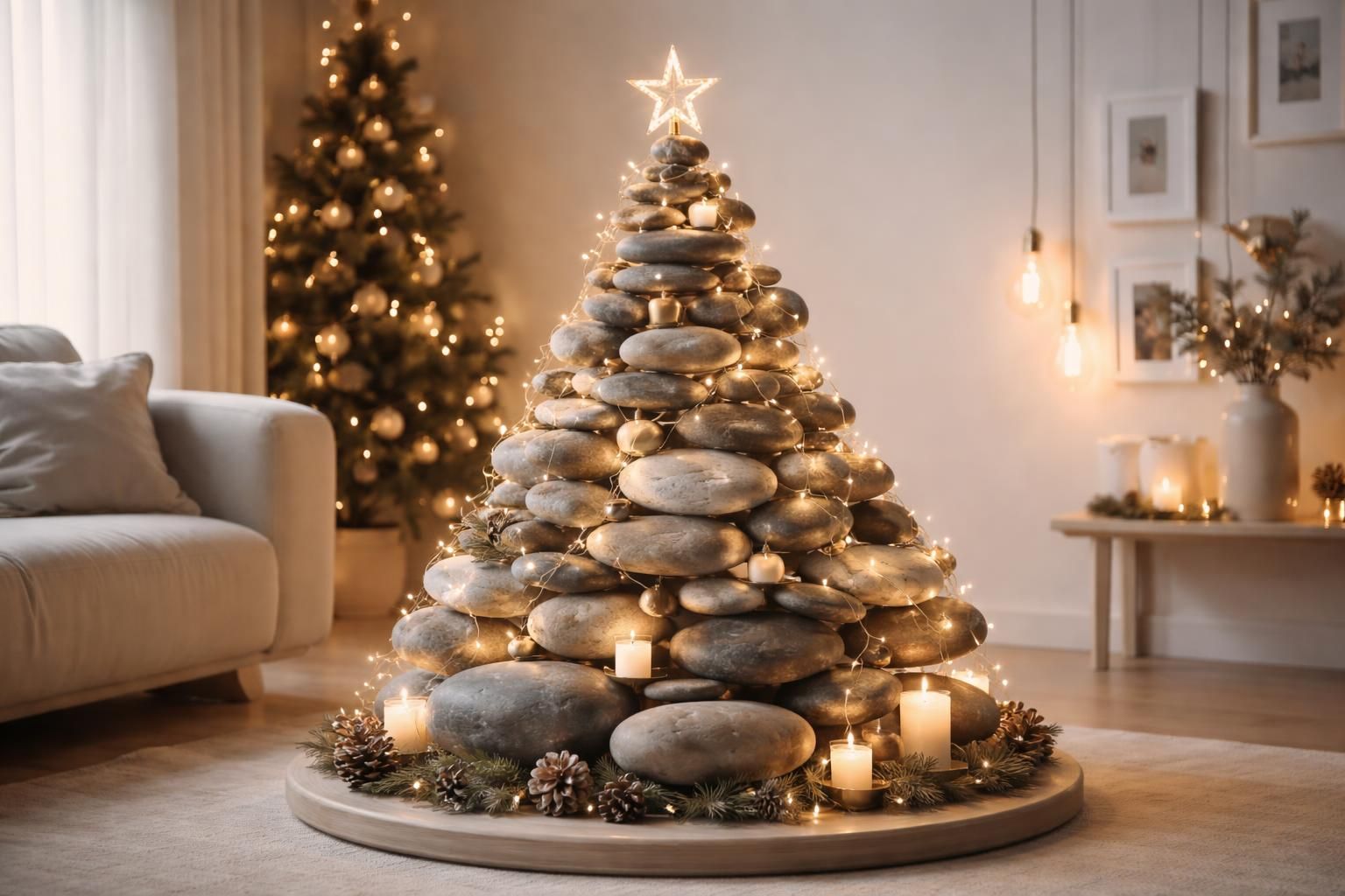 Développer un sapin de Noël sous forme d’objet de décoration, comme une structure en métal ou un assemblage de tubes en PVC, permet également d’expérimenter des designs variés. Ce format « créatif Noël » permet d’ajouter une touche unique tout en conservant l’esprit de Noël. En incorporant des décorations minimalistes ou graphiques, ce type de design peut s’agencer avec un intérieur contemporain tout en préservant une atmosphère festive.