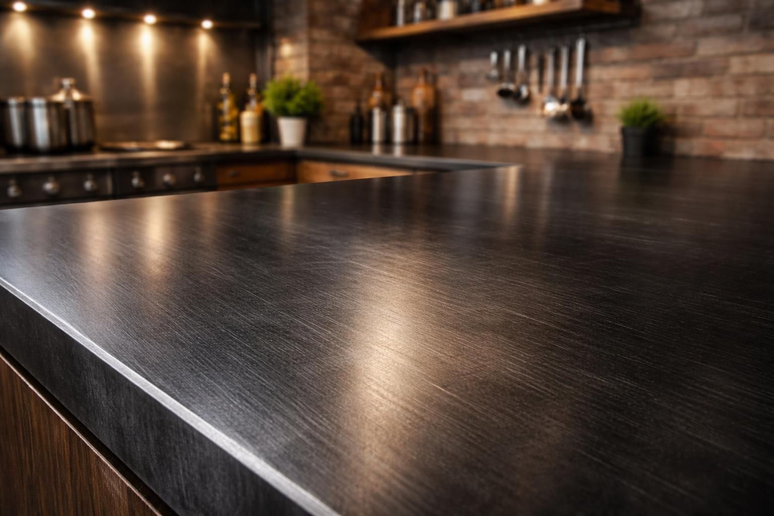 Plan de travail noir effet métal : le look industriel pour votre cuisine